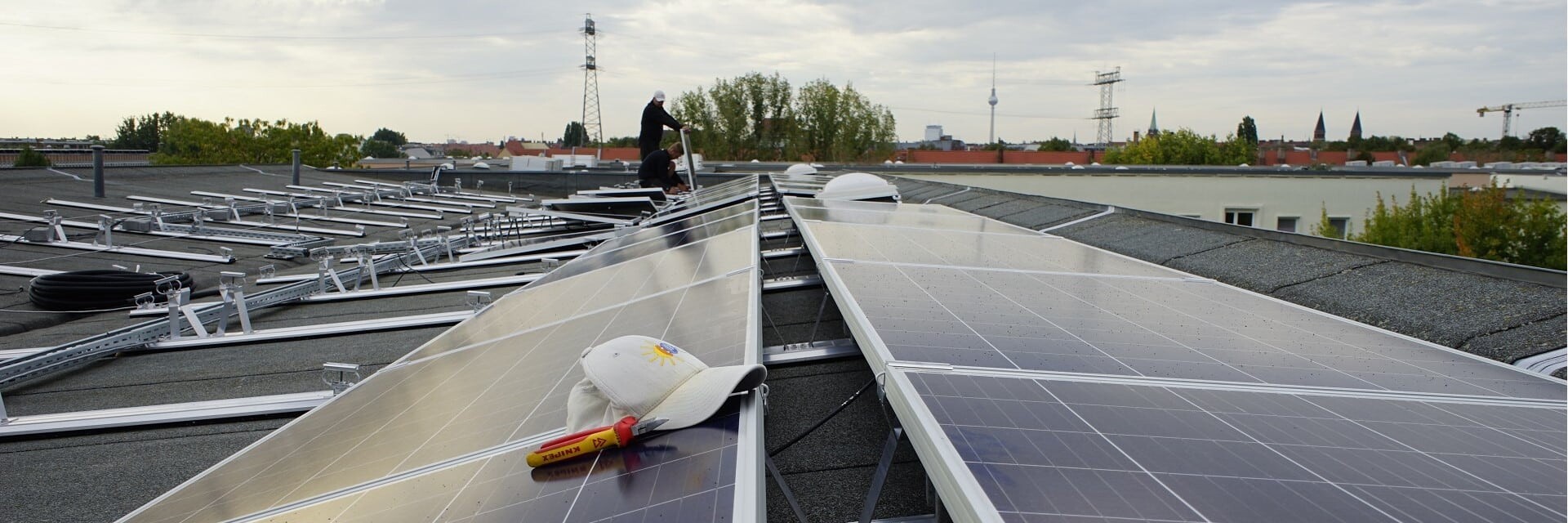 Die Berliner Wohnungsbaugesellschaft GESOBAU AG und die Berliner Stadtwerke starten gemeinsam ein weiteres Mieterstrom-Großprojekt in Pankow. An der Elsa-Brändström-, der Neumann- und der Vinetastraße werden in diesen Tagen 712 Photovoltaik-Module auf die Dächer montiert.